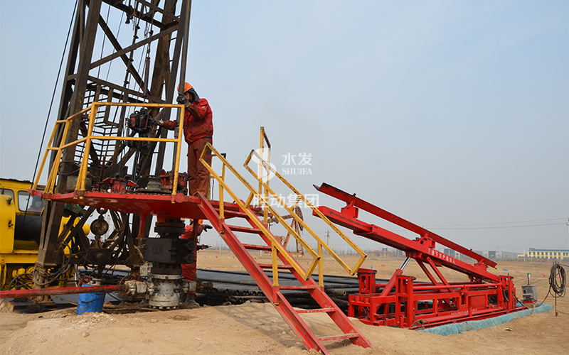 作业机械化装置主要由管杆自动运输机、闭口式液压钳、对开式吊卡、气动卡瓦以及作业操作平台等五部分组合而成。进行作业时,机械化程度较高,大大降低了作业工劳动强度,提高作业安全性,实现井场标准化,大幅提升作业劳动效率。施工中,可由一名井口操作工、一名场地工以及司钻配合完成作业过程。该机械化装置可适用于Φ60.3-88.9mm的管柱作业。